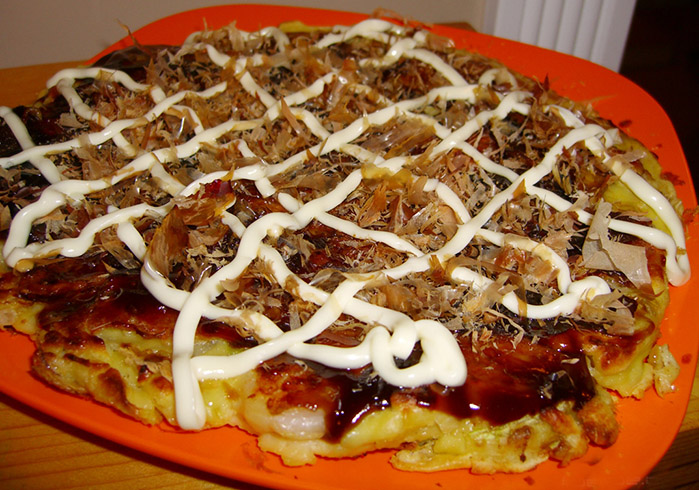 大阪燒是一種日式蔬菜煎餅,為日本關西的一種庶民美食,也是大阪飲食文化的一部分,麵食文化的代表。”在日軍侵台50年間,日本的美食也台灣傳播開來。也有人稱大阪燒為“ 日本式比薩餅 ”!